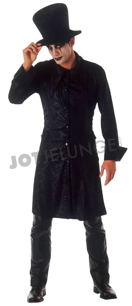 Kostüm, Raven, schwarz, Lederoptik, lange Jacke, Hut, Gr. XL