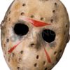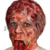 Horrormaske in Form eine Schädels, der mit weißer Farbe, rotem Lippenstift und einer Gumminase zum Clown geschminkt worden ist.