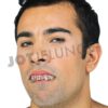 Bei diesen Vampirzähnen rührt man eine Masse an, die anschließend in den Zahn eingestrichen wird. Die Zähne werden aufgesetzt und die Masse härtet aus. Diese Prozedur muß nur einmal durchgeführt werden. Die Zähne sind dann individuell an die eigenen Eckzähne angepasst, und können immer wieder auf- und abgesetzt werden (ohne Kleber).